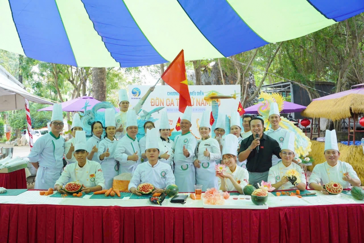 ✨ Ngày hội Ẩm thực Dân gian Bửu Long 31.8: Các đầu bếp đến từ Hội Đầu Bếp Đồng Nai đã trình diễn cắt tỉa mô hình khổng lồ "Rạng rỡ Việt Nam" và trưng bày phục vụ du khách tham quan.